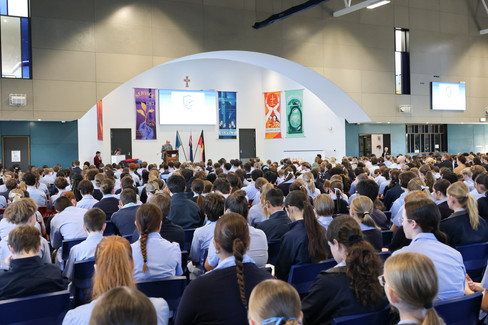 Following the commemorative part of the assembly, we celebrated student achievement, presenting College Colours in the areas of Academic, Community, and Faith, as well as College Honours for students who earned colours across all three categories.